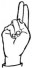 На ћирилици написано НЕДА БОЛУНОВИЋ састоји се из 13 слова [?]. Исписано ћириличном једноручном азбуком за глувонеме: